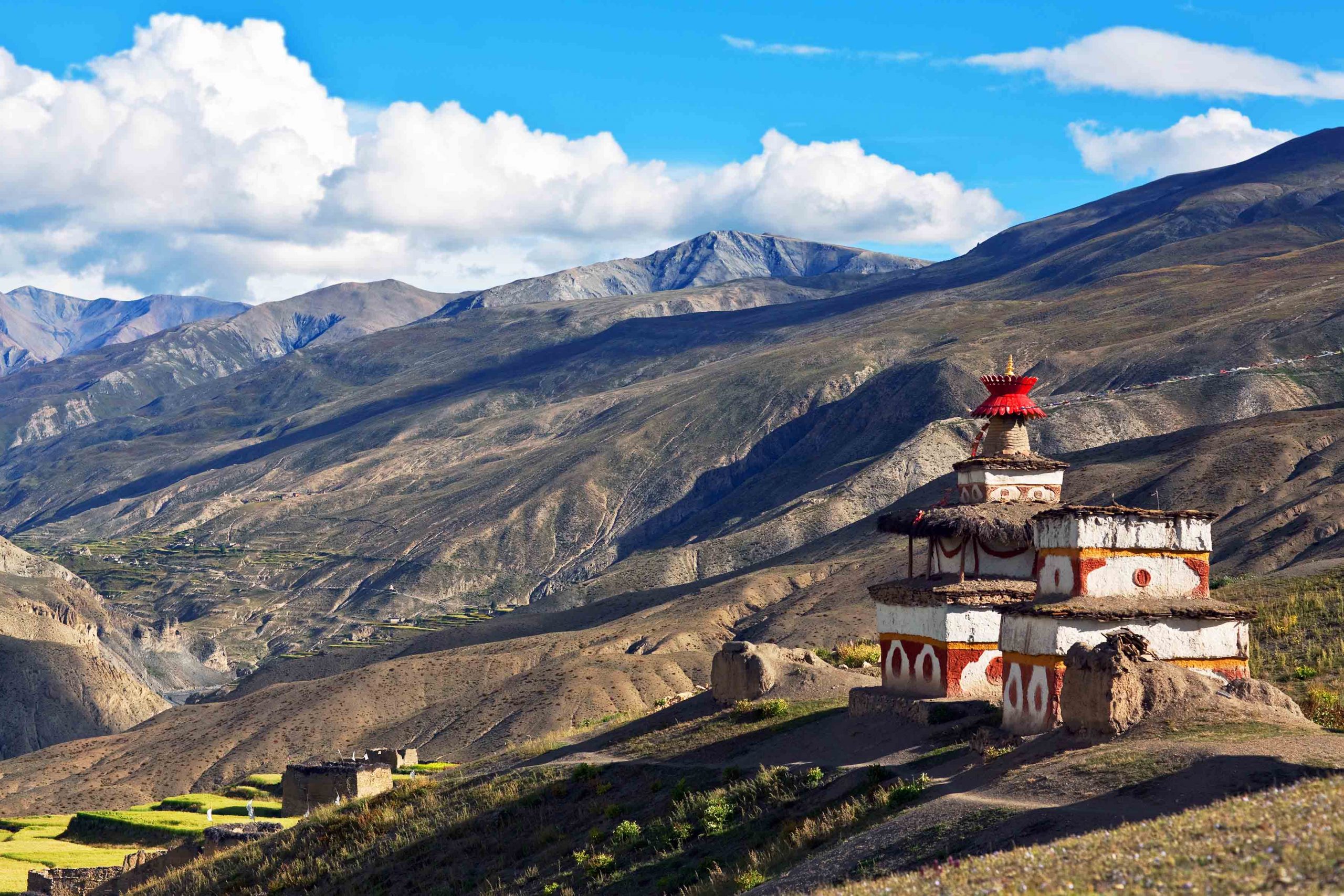 The Dolpo region is bounded to the south and east by the Dhaulagiri mountain range, the Sisne and Kanjiroba mountains to the west and the Tibetan plateau to the north, and its extraordinary natural beauty was exquisitely captured in the Oscar nominated film of cinema “Caravan”.